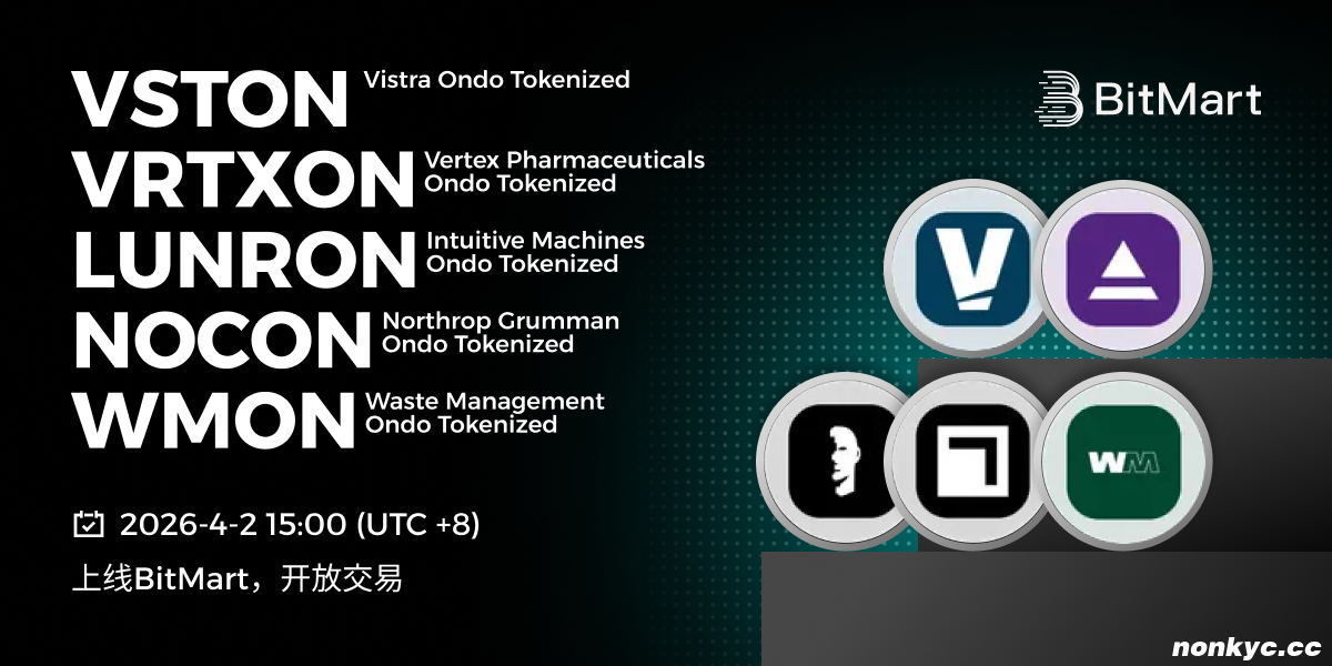 BitMart币市上线交易对VSTON、VRTXON、LUNRON、NOCON、WMON