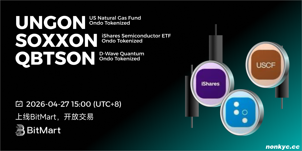 BitMart于2026年4月27日上线Stocks US Natural Gas Fund Ondo Tokenized(UNGON)、iShares Semiconductor ETF Ondo Tokenized(SOXXON)、D-Wave Quantum Ondo Tokenized(QBTSON)。上线各项细节请参照: