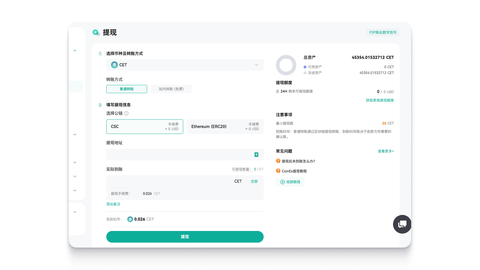 请注意:如提现到错误账号,CoinEx也无法帮你找回。