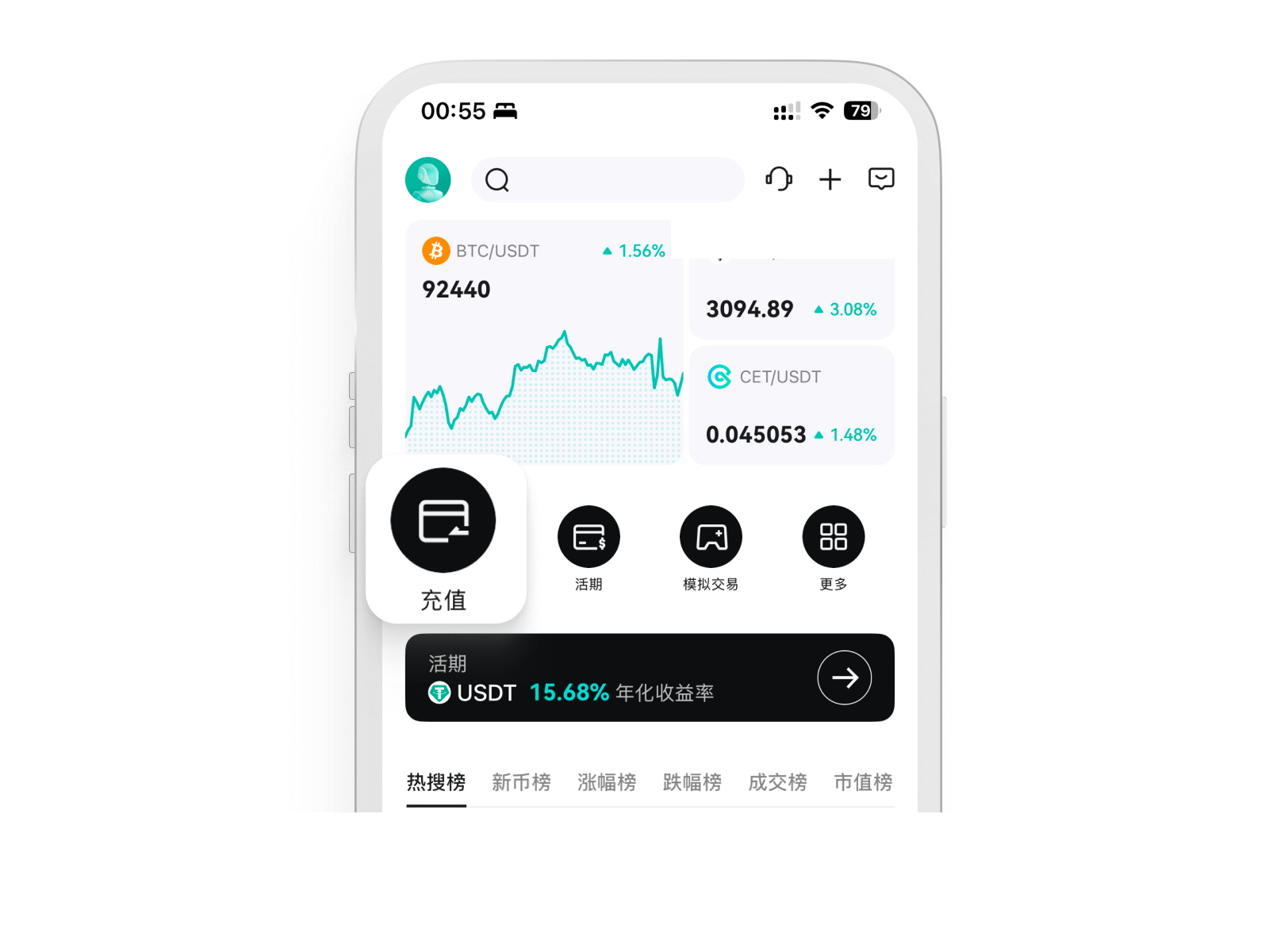 📱打开CoinEx App,在首页点击【充值】或前往【资产】>【充值】进入对应页面。