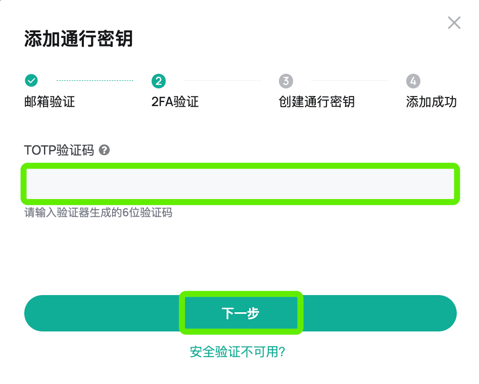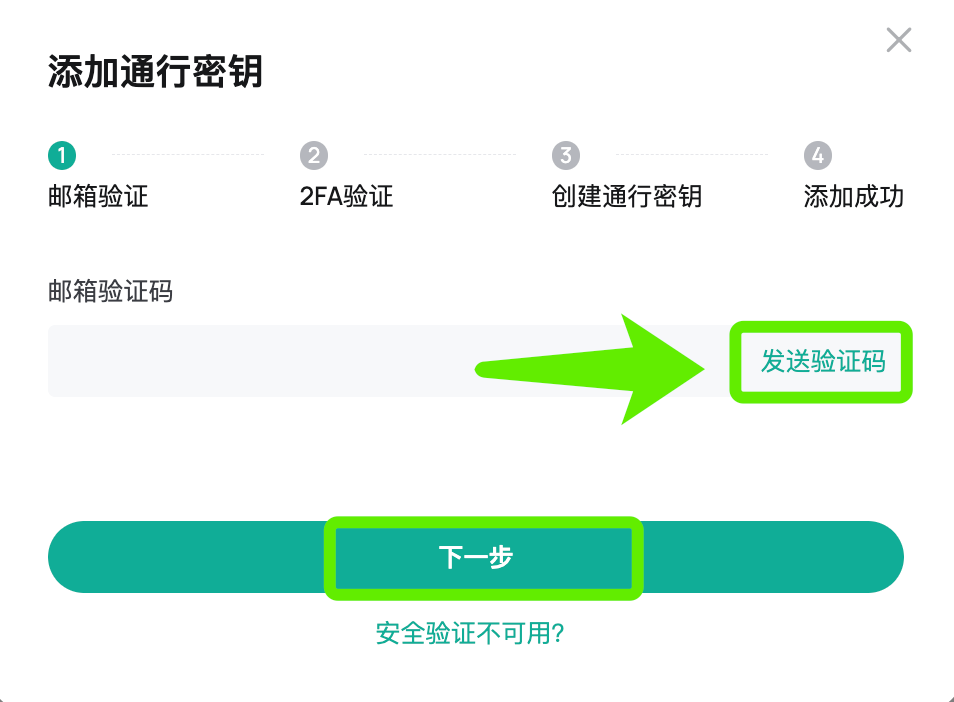 CoinEx官网通行密钥绑定添加流程图