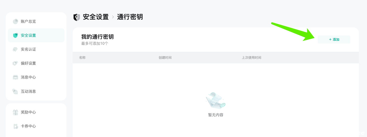 二、如何添加通行密钥?