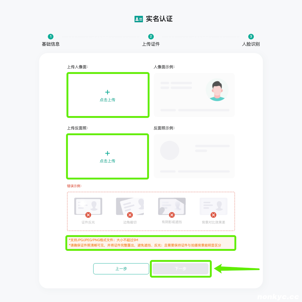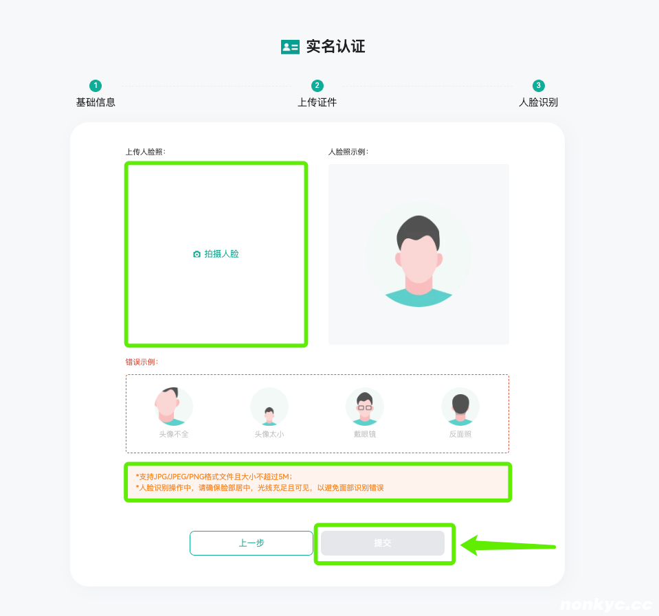 上传同时手持证件正面及手写声明书的照片,点击【提交】。
