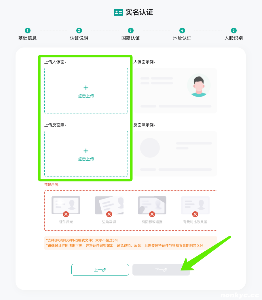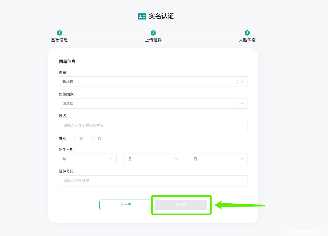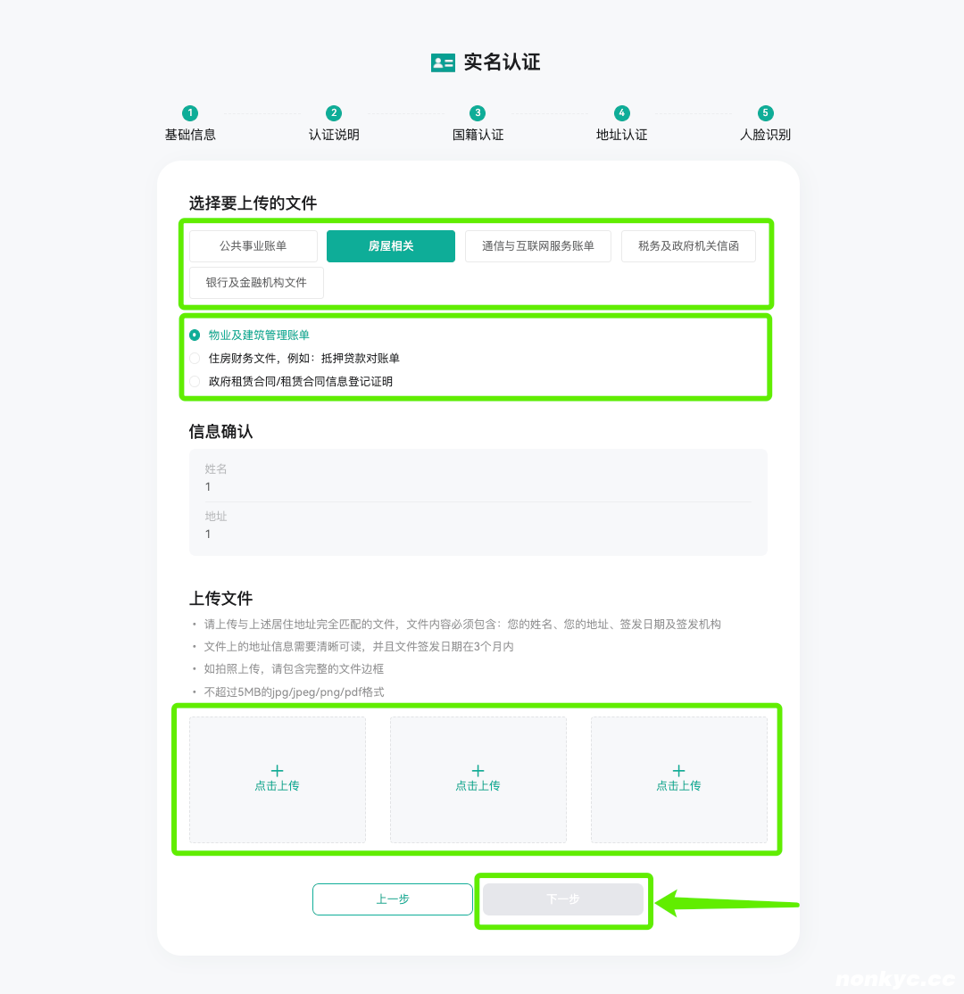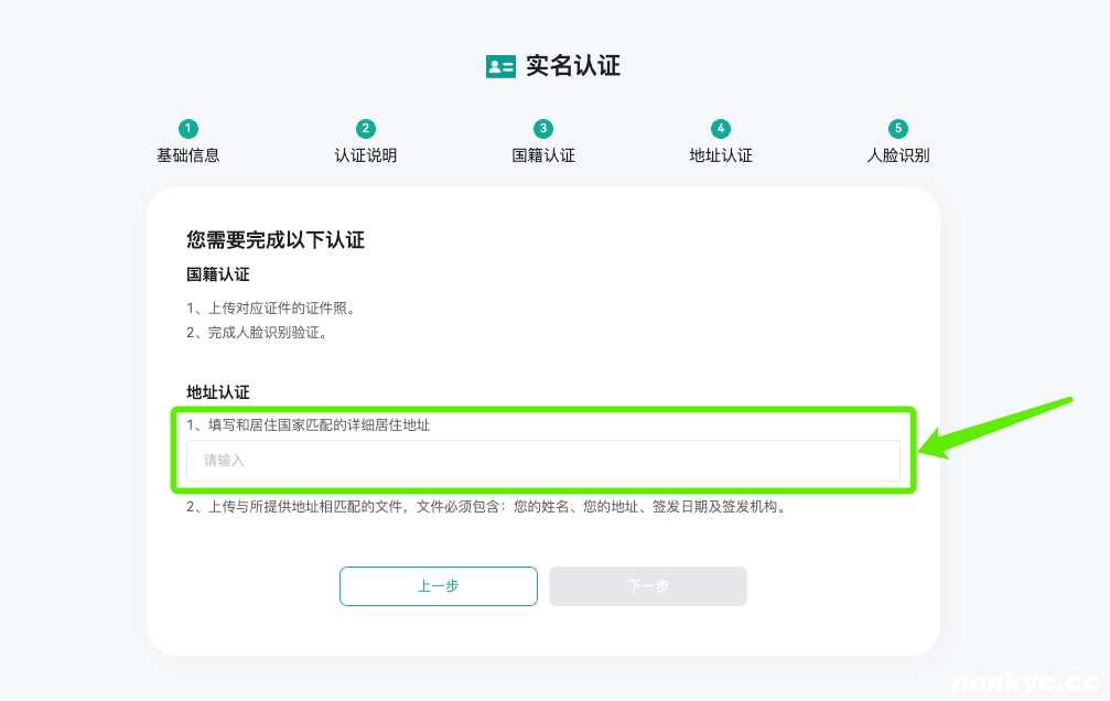 (2)国籍与居住国家不一致:完成国籍&地址认证。