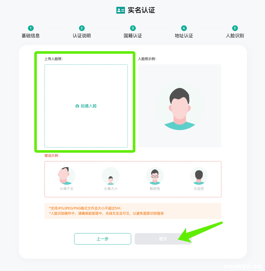 1、照片支持JPG、JPEG或PNG格式,上传照片最大支持5M;