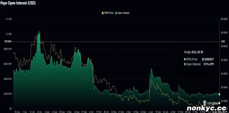 以青蛙为主题的表情包加密货币Pepe币在周四美股交易时段上涨超过8%,触及0.000004美元的高点。此次上涨与表情包币市场的整体复苏相符,资金在市场情绪稳定支撑下转向风险更高的资产。然而,Pepe币未平仓合约指标的停滞趋势表明市场投机力量不足。Pepe币价格能否重新站上0.000005美元的关口?
