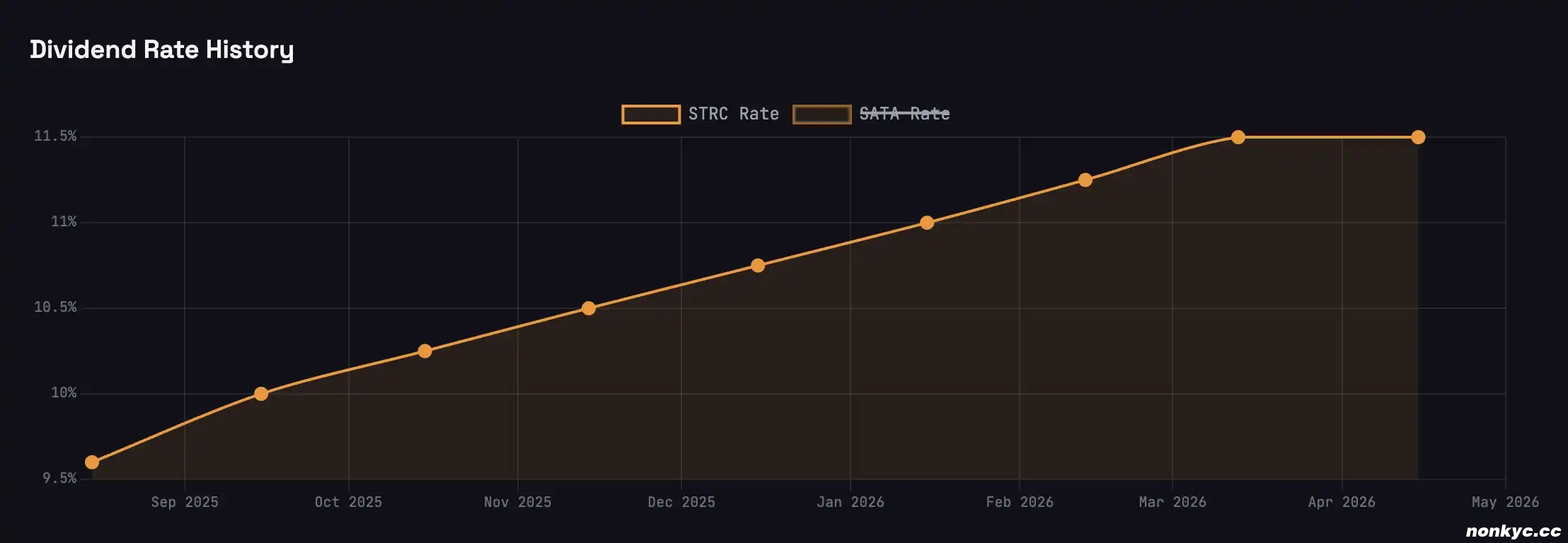 你花大约 100 美元买一股 STRC。Strategy 每月按现金派息,年化 11.5%,也就是每股每月约 96 美分。它永不到期,Strategy 也不需要偿还本金。