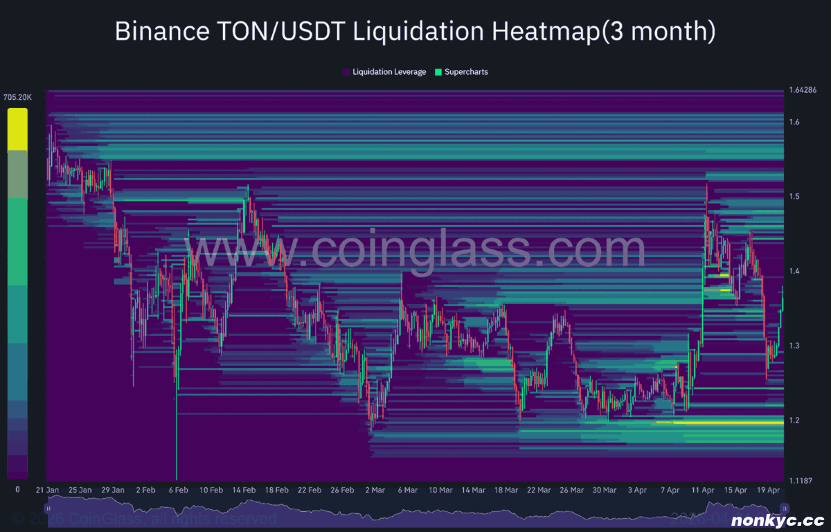 这一转变使得市场重新关注1.5美元附近的流动性聚集区。当买盘压力持续增强时,这些区域往往会吸引价格上涨。