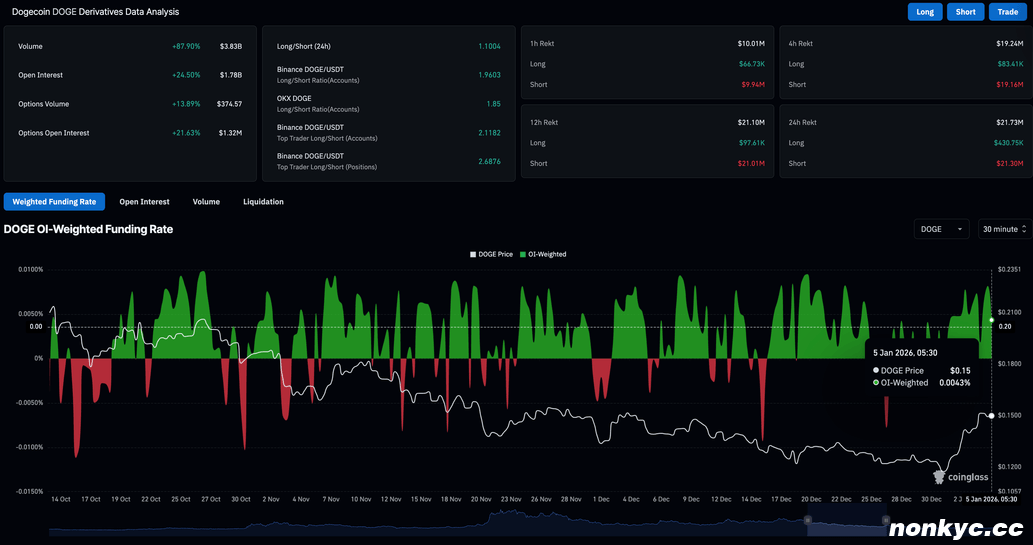 $DOGE衍生品数据。来源:CoinGlass。狗狗币的涨势能否持续,突破 200 日均线?